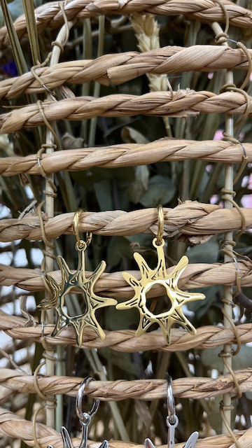 Pendientes en forma de sol en dorados. 100% METAL.