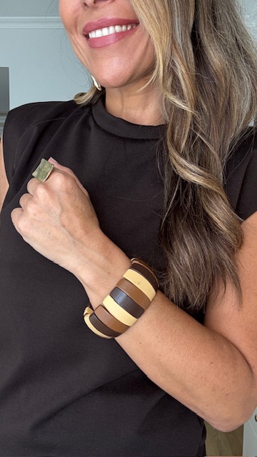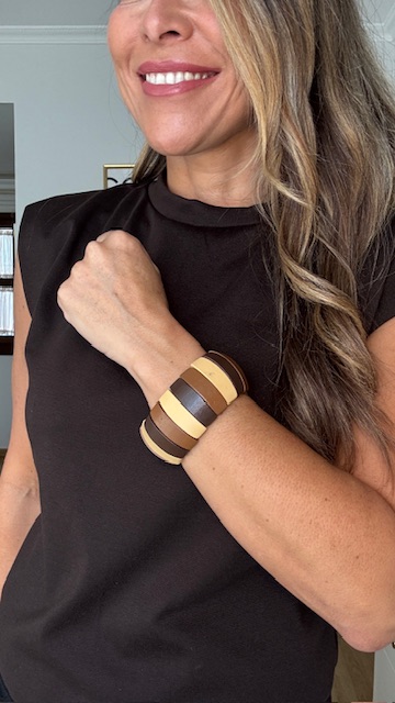 Pulsera elástica de madera en diferentes tonos tierra.