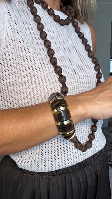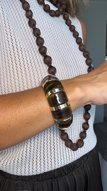 Pulsera elástica en carey con detalles en dorado. Plástico +acrílico 100%