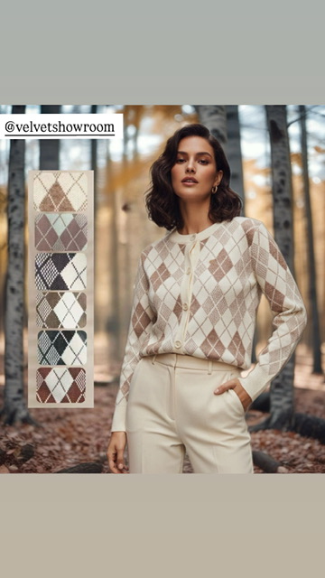 Rebeca con estampado de rombos y cuello redondo a la caja. Talla única válida desde la 36 hasta la 40. Es muy calentita. Disponible en seis colores diferentes.