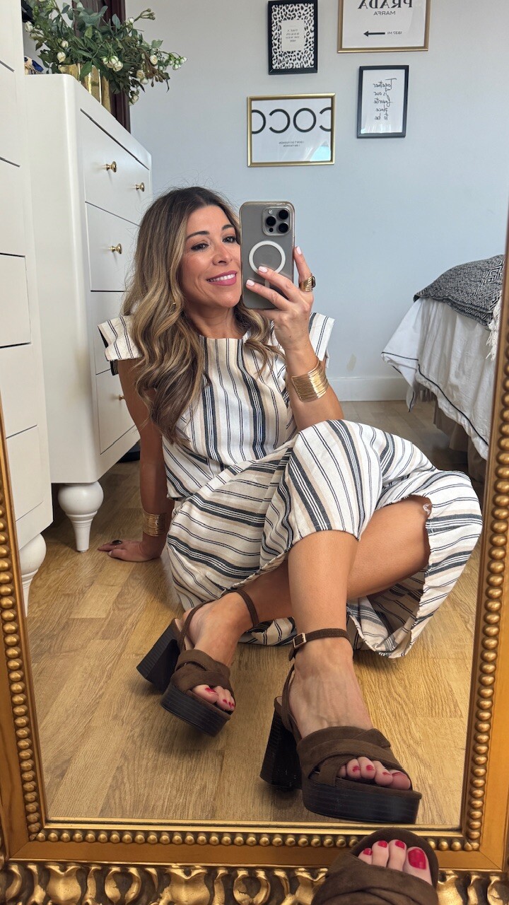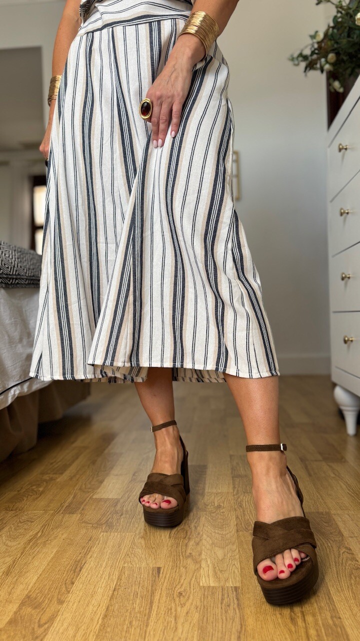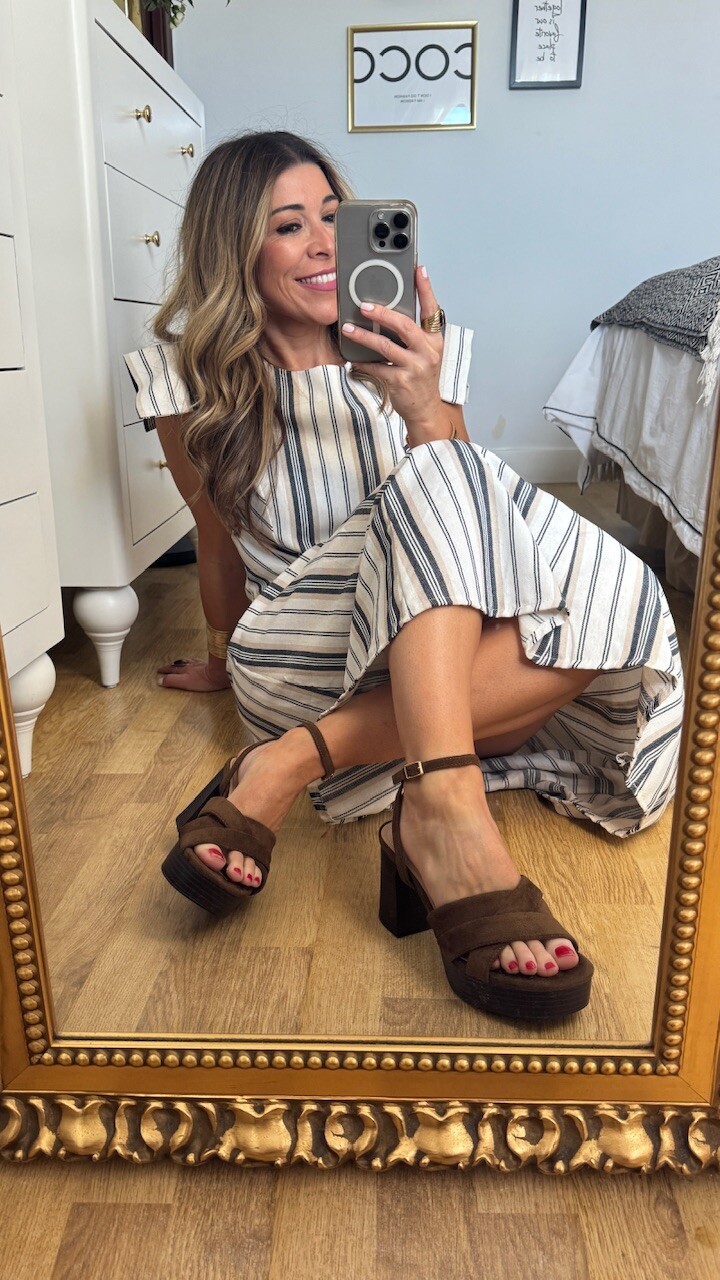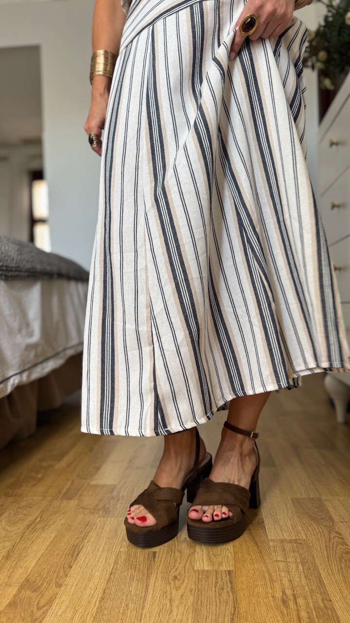 Sandalia con tacón ancho en color marrón con plantilla acolchada. Tallan normal. tacón 8 cm Plataforma 2,5 cm.