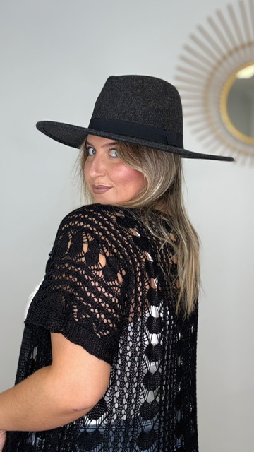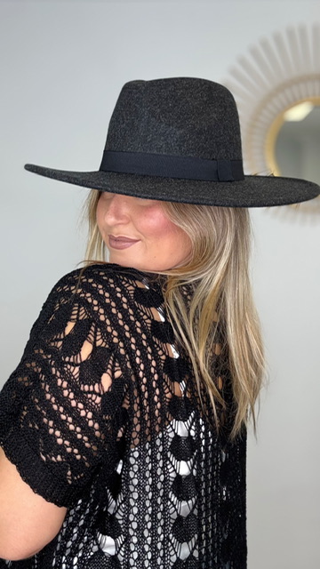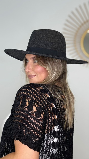 Sombrero Paño Gris Oscuro Cinta Negro