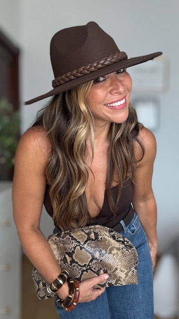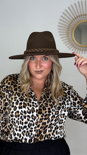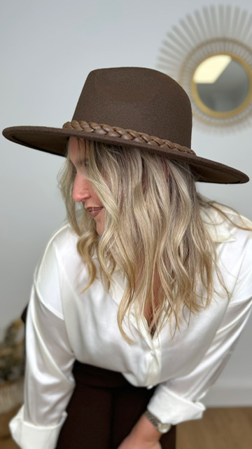 Sombrero de paño con detalle de trenza en marrón chocolate . Se puede ajustar.
