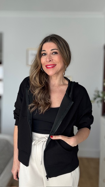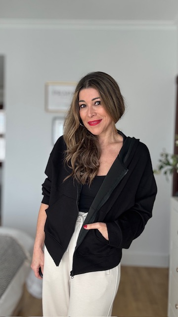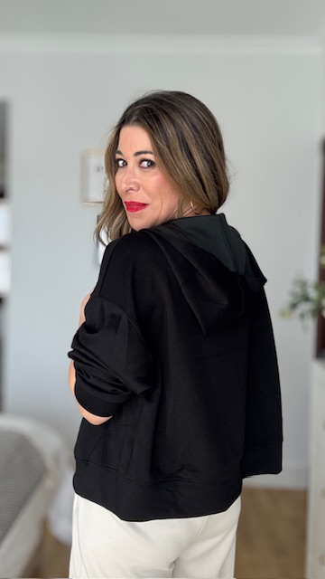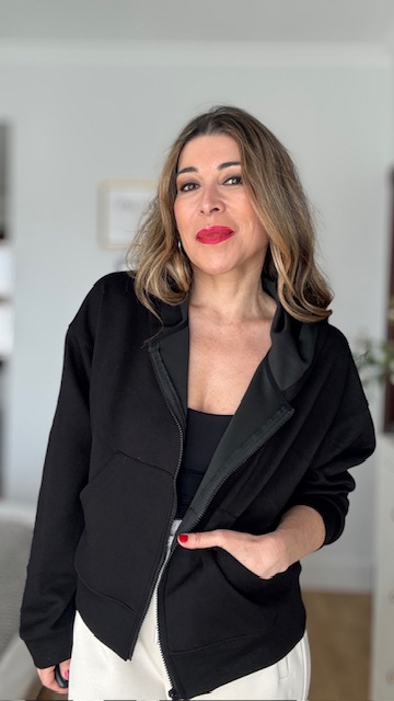 Sudadera con capucha y cremallera delantera en color negro y con bolsillo central. Talla única vida desde 36 hasta 44.