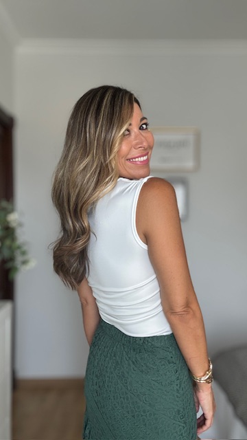 Top de tirantas de licra en color blanco. Talla única válida des la 34 hasta la 38/40.
