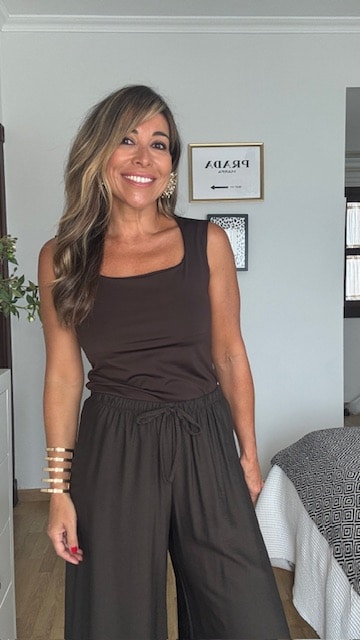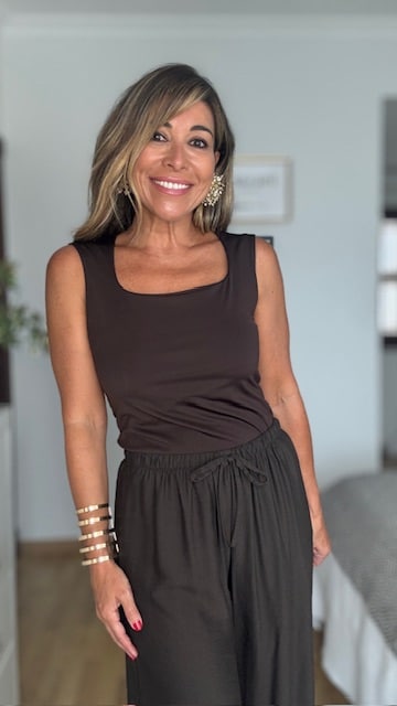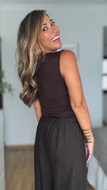 Top de tirantas de licra en color marrón. Talla única válida des la 34 hasta la 38/40.