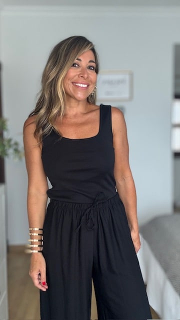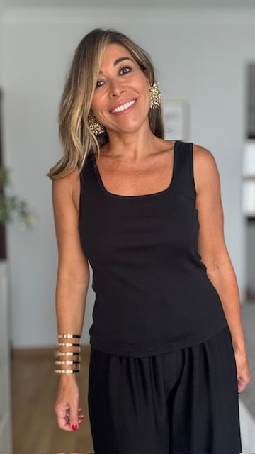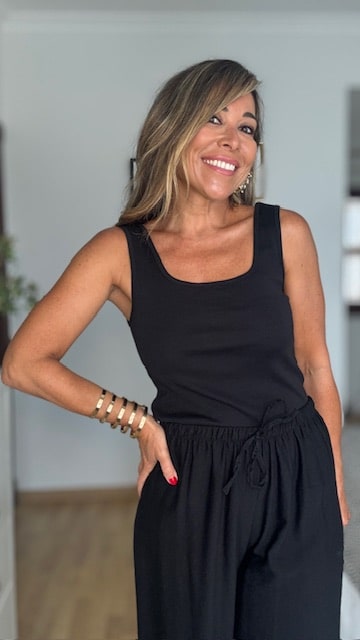 Camiseta de algodón con tirantas en color negro. Talla única válida desde la 36 hasta la 42.