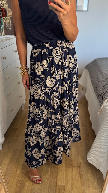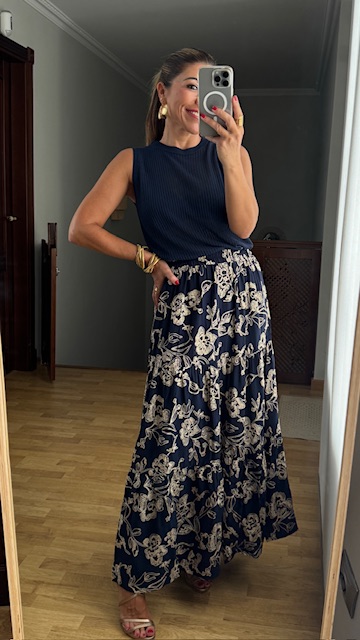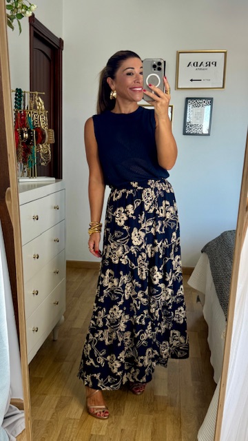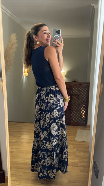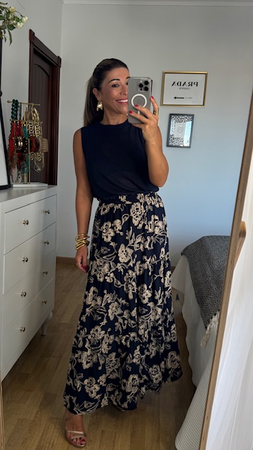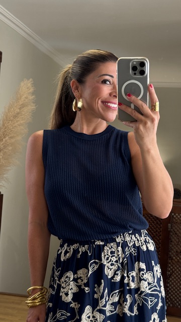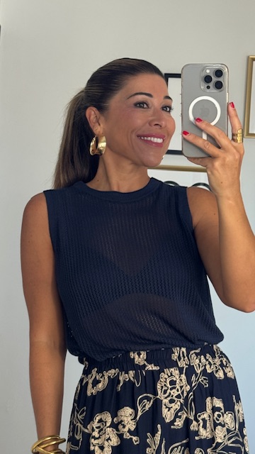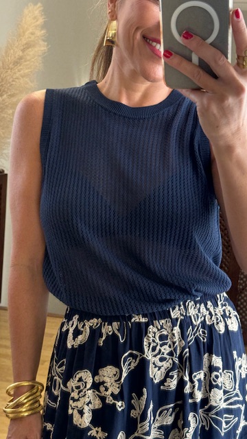 Top de hilo caladito con mangas a la sisa y cuello a la caja en color azul marino. Talla única válida desde la 34 hasta la 42.