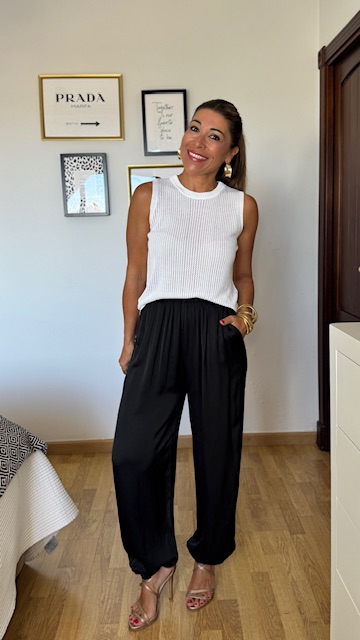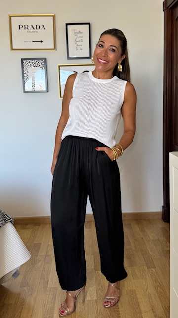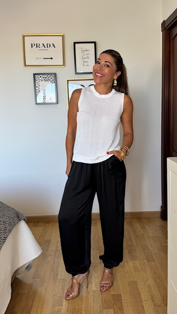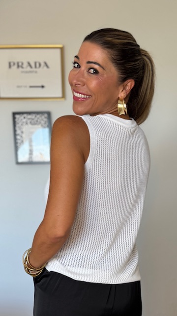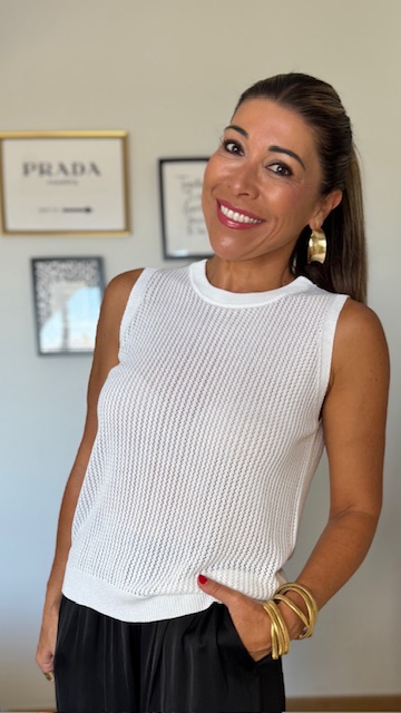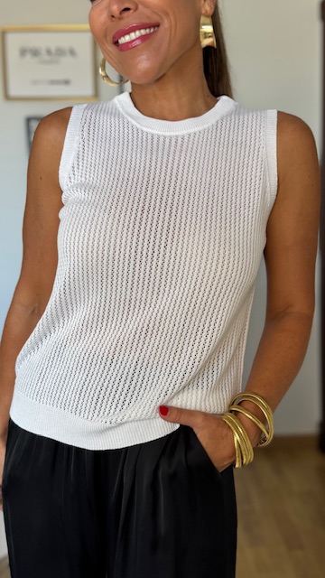 Top de hilo caladito con mangas a la sisa y cuello a la caja en color blanco. Talla única válida desde la 34 hasta la 42.