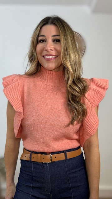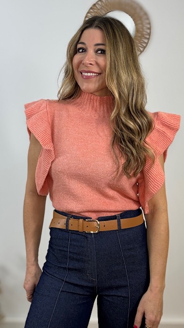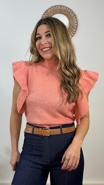 Top chaleco con volantes en la sisa en color melocotón. Talla única válida desde la 36 hasta la 44.