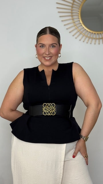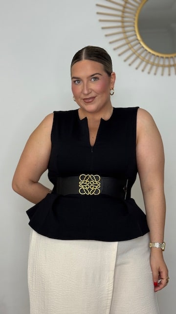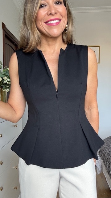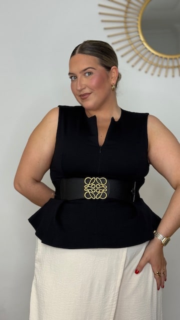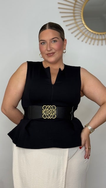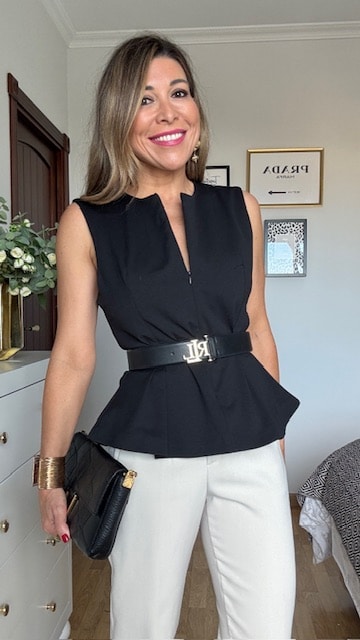 Top a la sisa en color negro confeccionado en tejido de crepé elástico. Talla única válida desde la talla 36 hasta la talla 44.