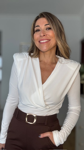 Top con hombreras con escote de pico y manga larga. Talla única válida desde la 36 hasta la 42.
