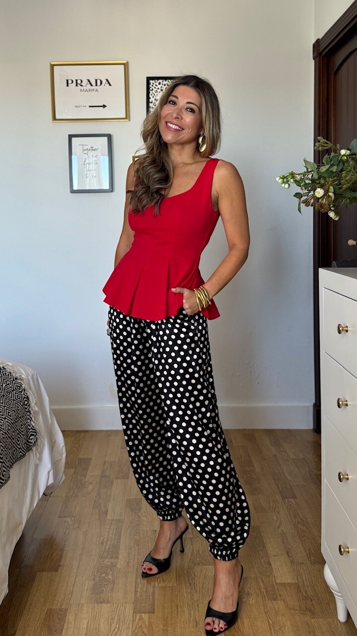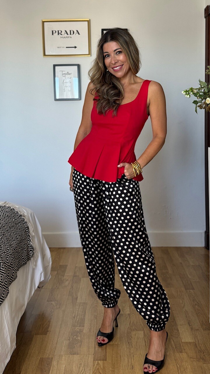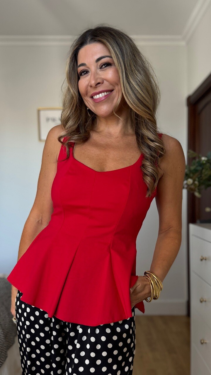 Top de tirantes en color rojo con volantón . Lleva forro. Talla única válida desde la talla 36 hasta la talla 42/44.