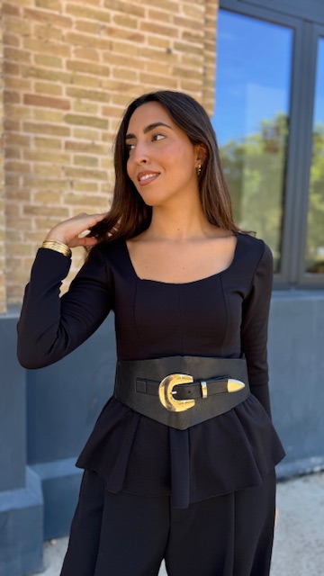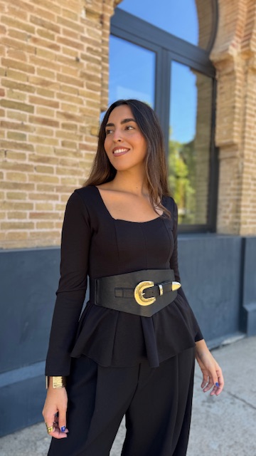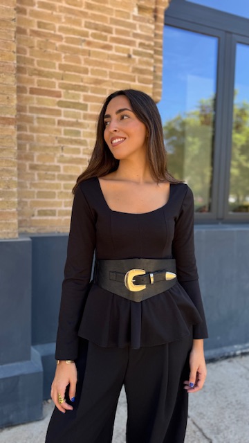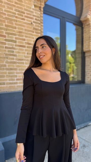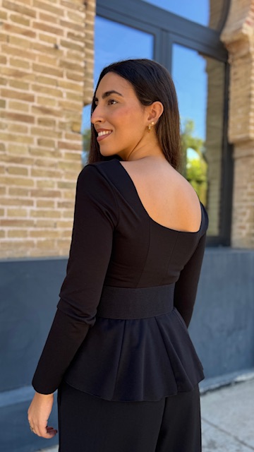 Top en color negro con manga larga. Talla única válida desde la 36 hasta la 44.