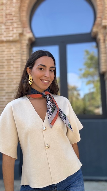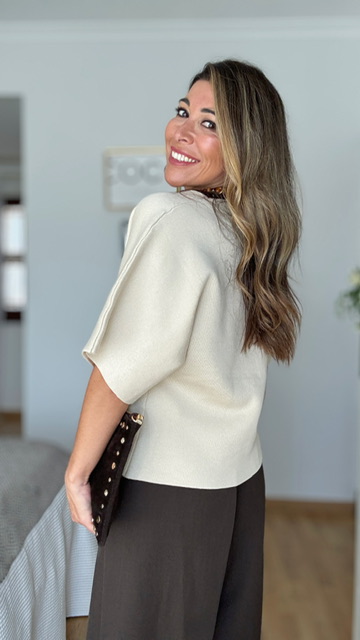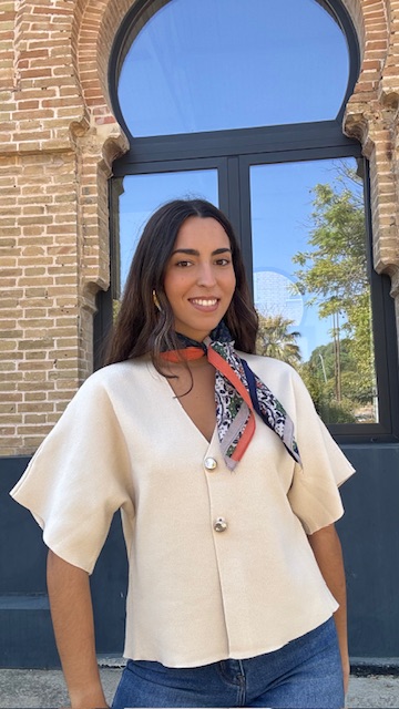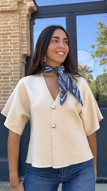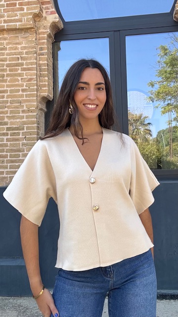 camisa confeccionada en tejido de punto en color beige con detalle en la parte delantera. Talla única válida desde la 36 hasta la 42.