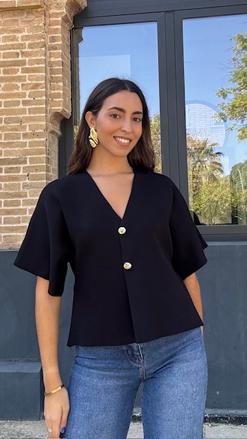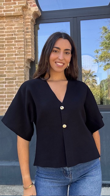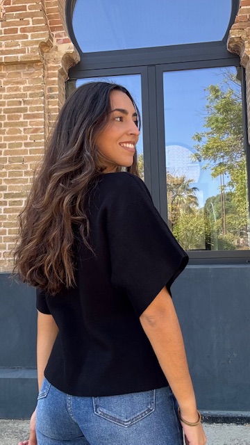 camisa confeccionada en tejido de punto en color negro con detalle en la parte delantera. Talla única válida desde la 36 hasta la 42.