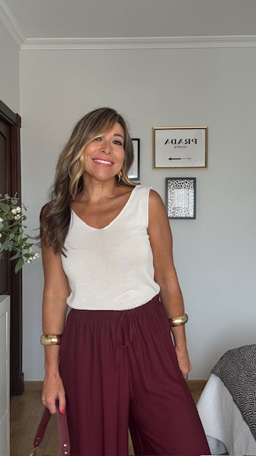 Top de tirantes en color caza confeccionado en tejido de punto. Talla única válida desde la 36 hasta la 40/42.