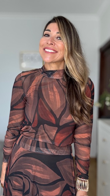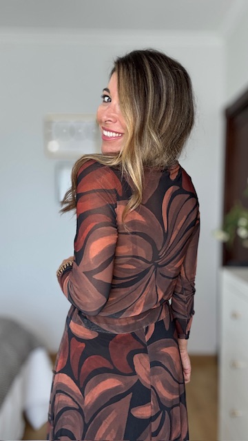 Top de tul con estampado en tonos tierra. Talla única válida desde la 36 hasta la 40/42