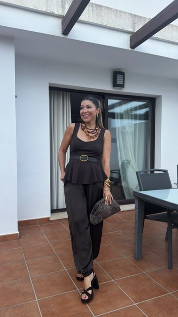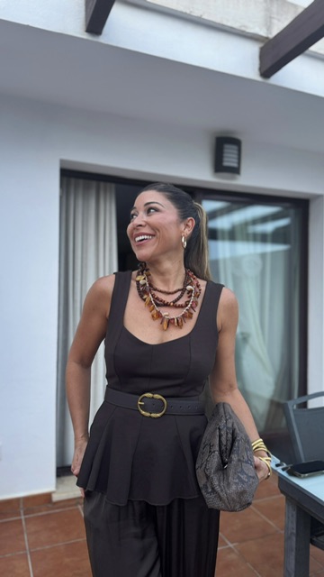 top elástico en color marrón. Talla única válida desde la 36 hasta la 44.