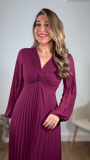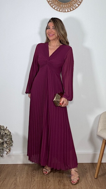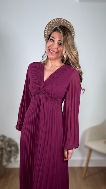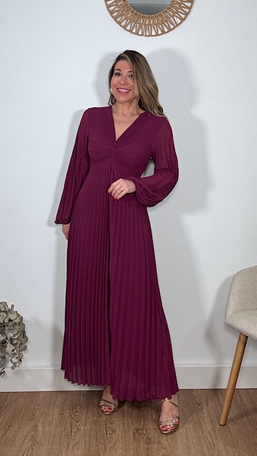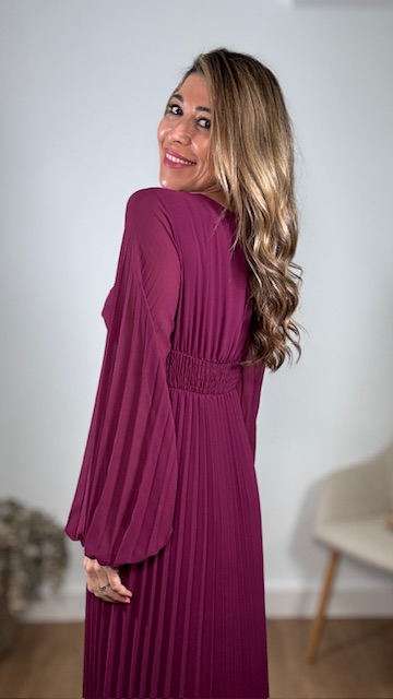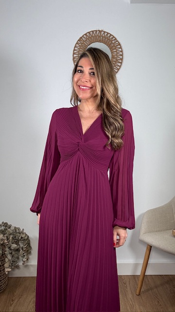 Vestido plisado largo con forro en su parte interior en color buganvilla. Talla única válida desde la 36 hasta la 44.