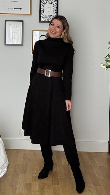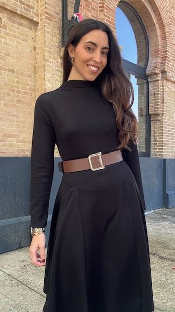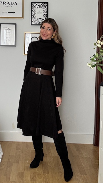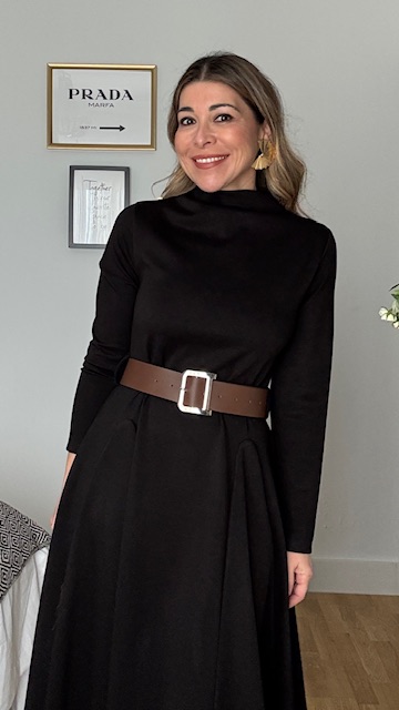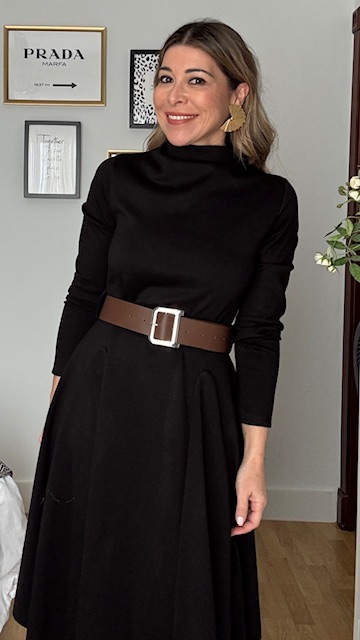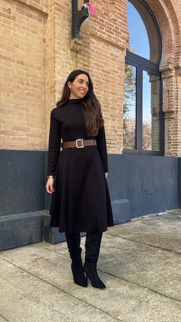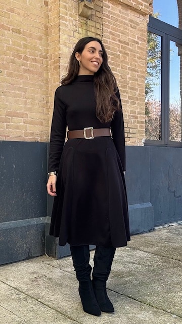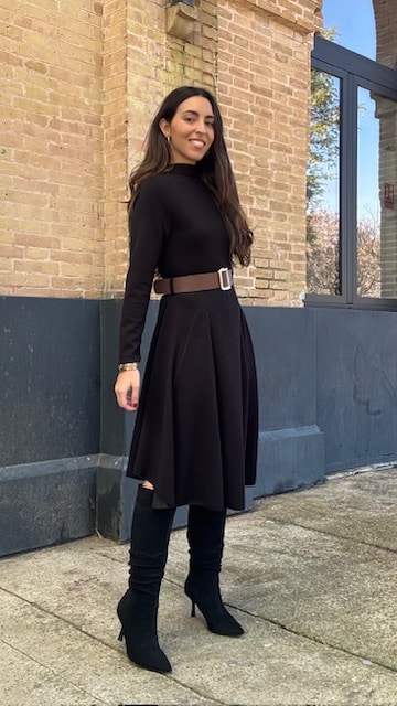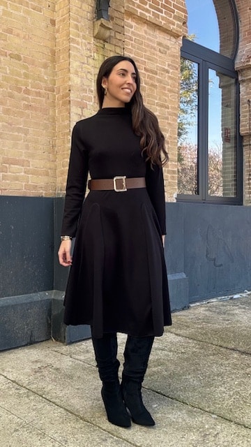 Vestido midi con cinturón en color marrón en color negro. Talla única válida desde la 36 hasta la 44.