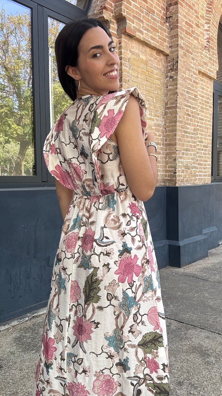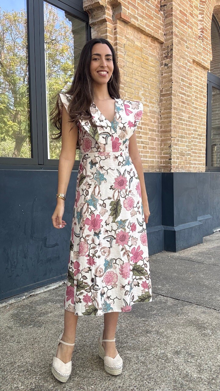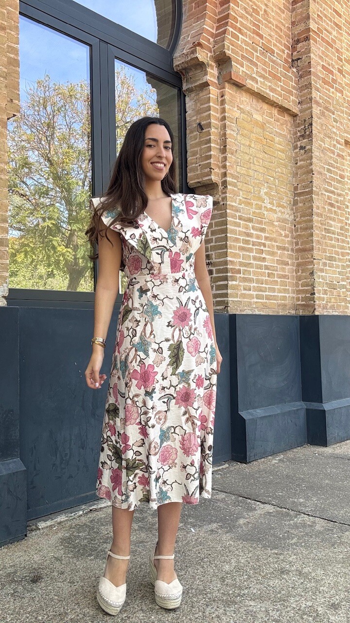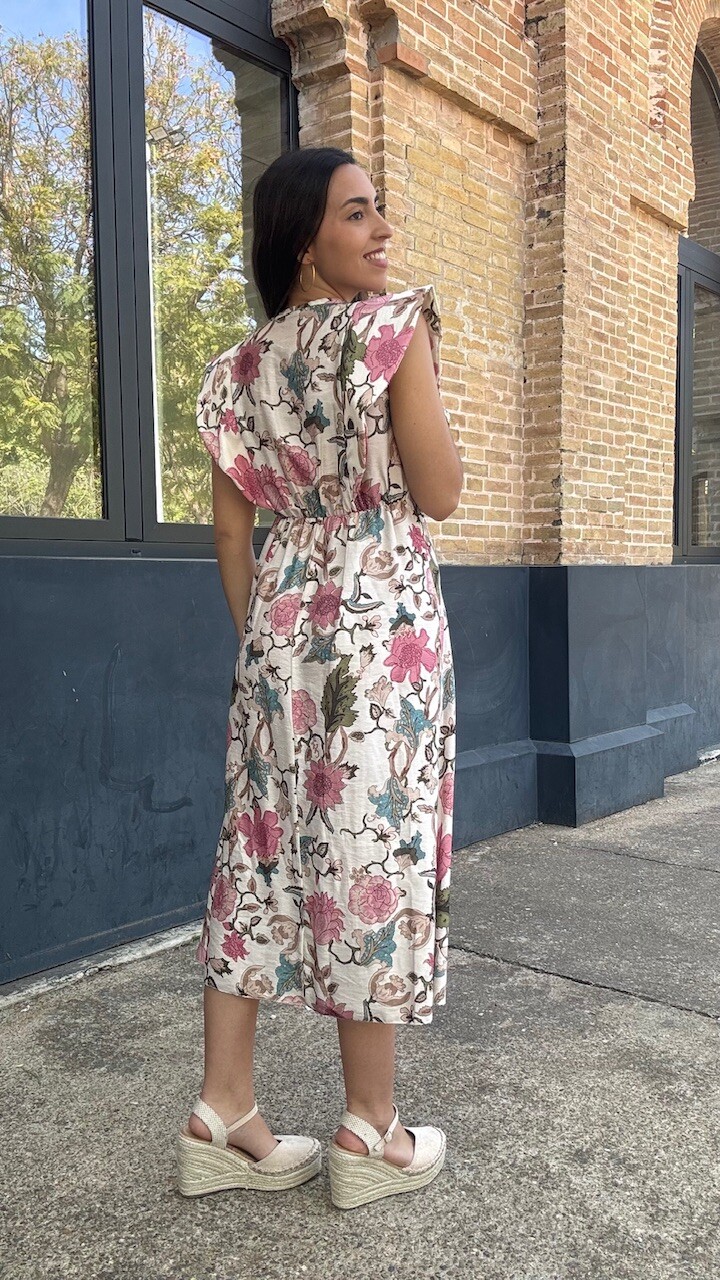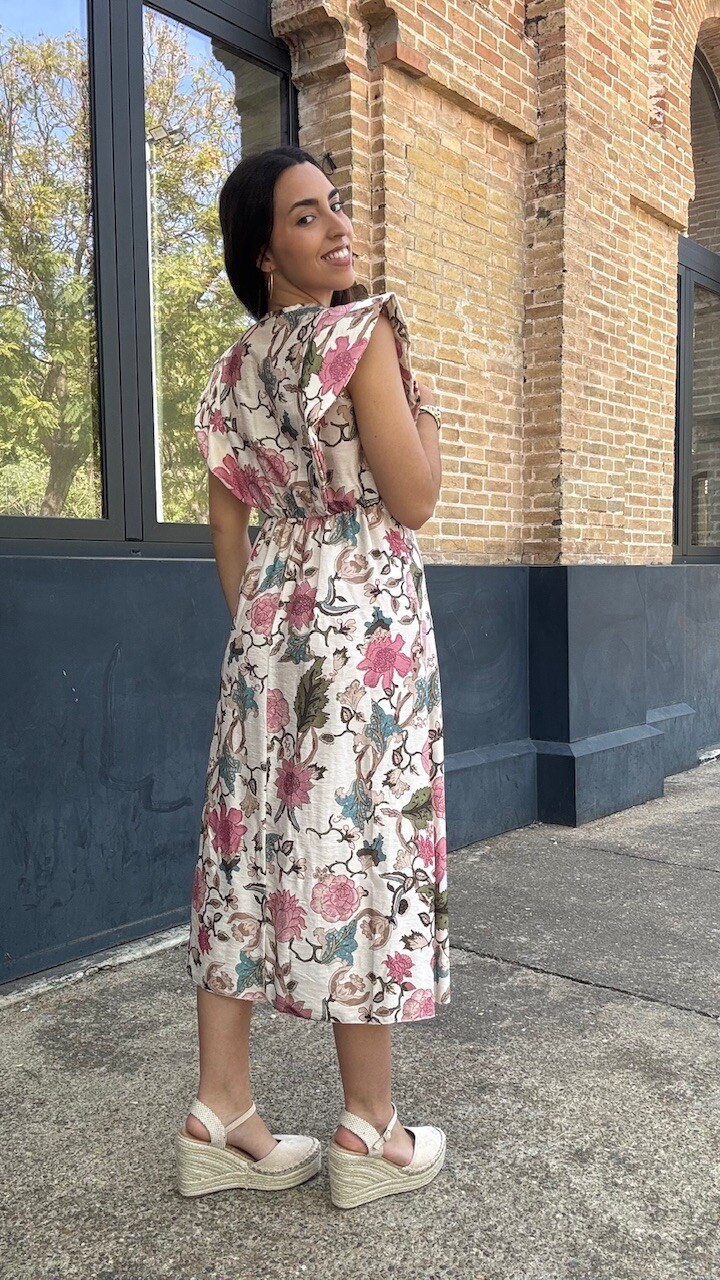 Vestido Estampado Flores Beige