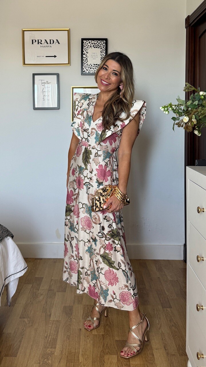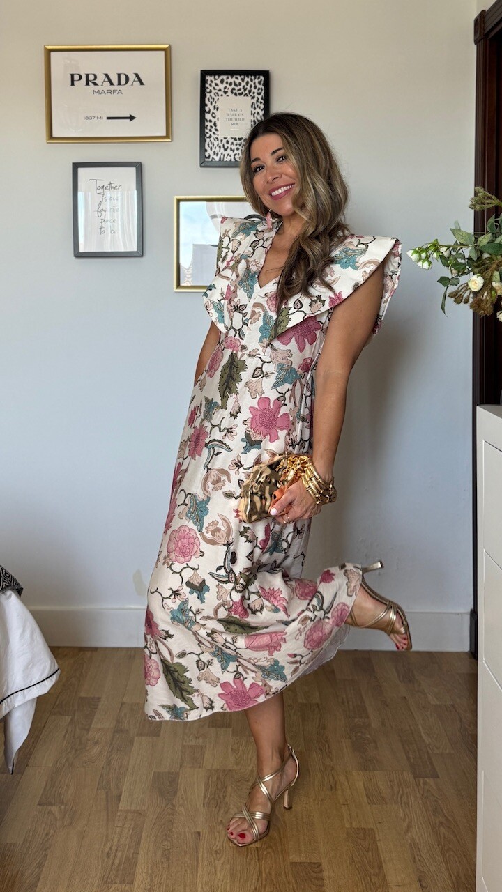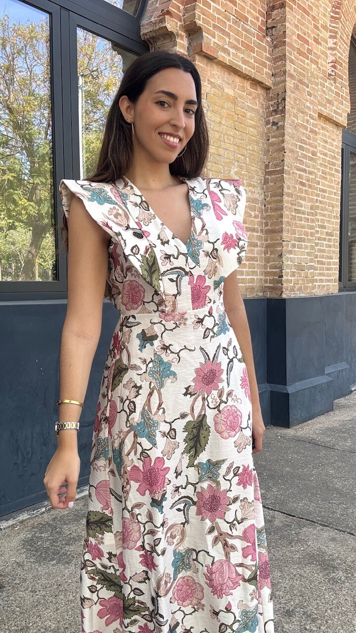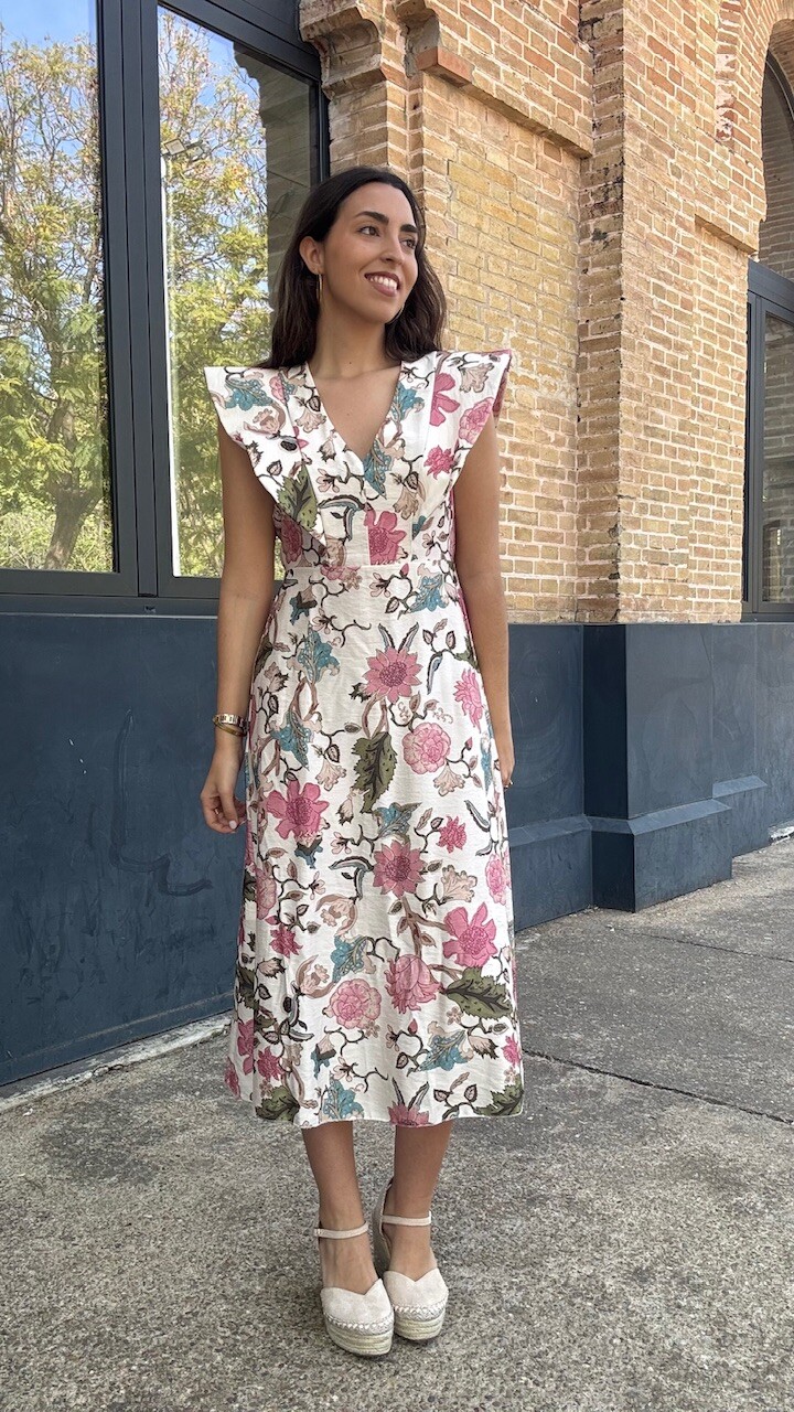 Vestido Estampado Flores Beige