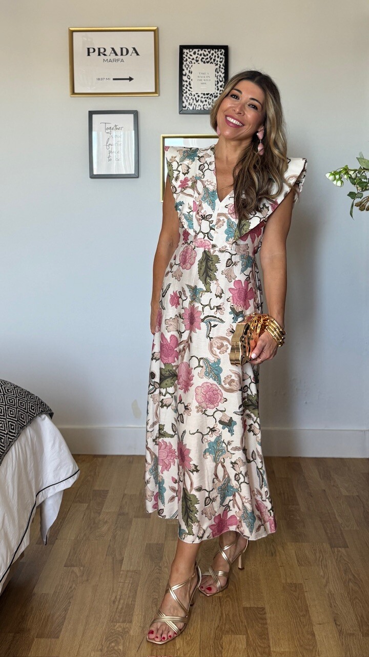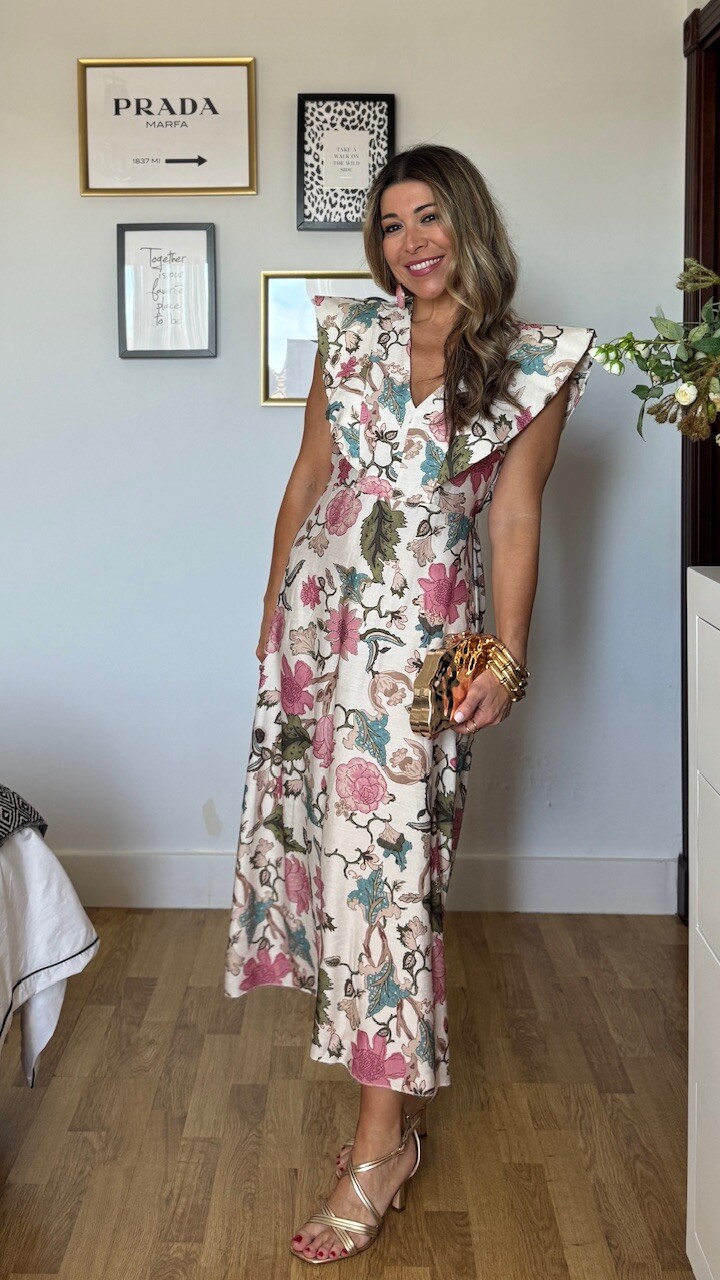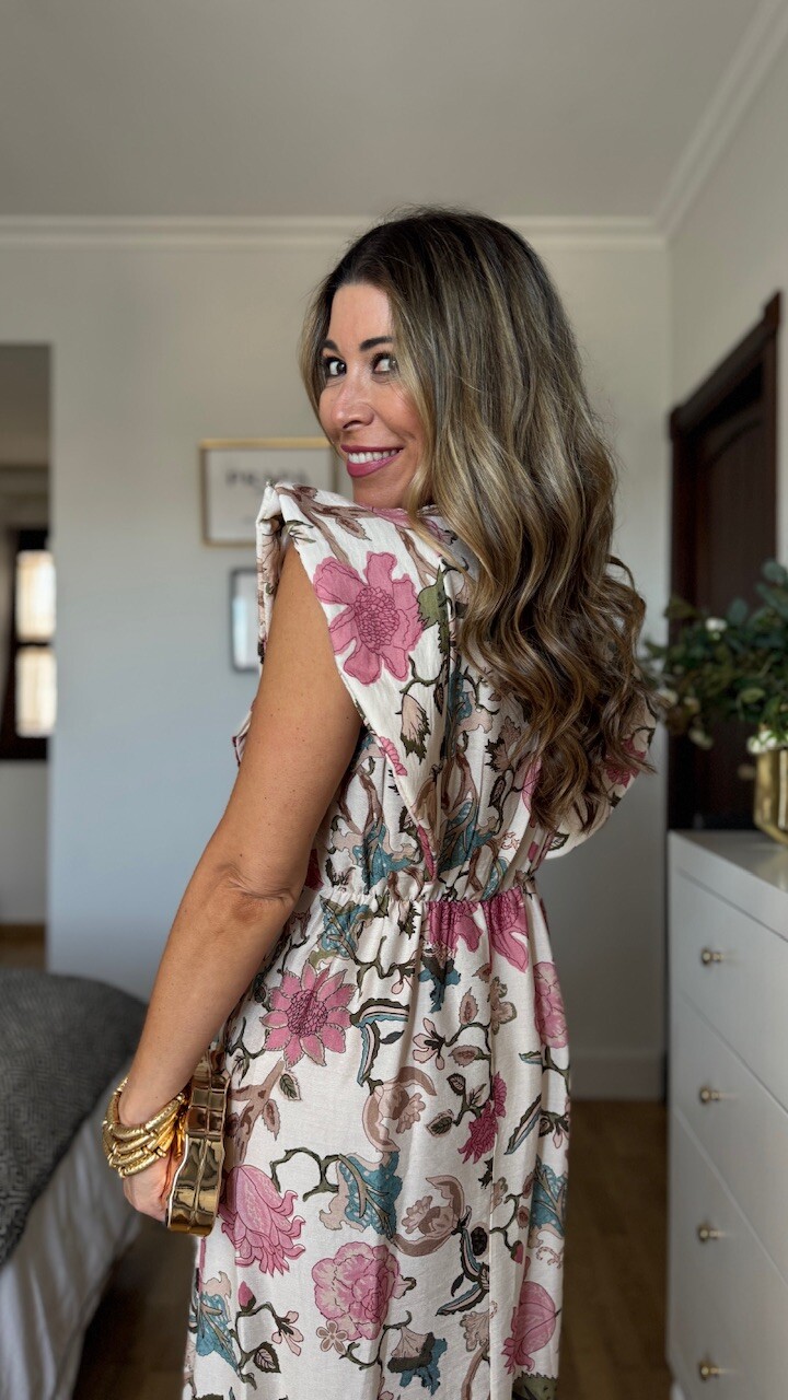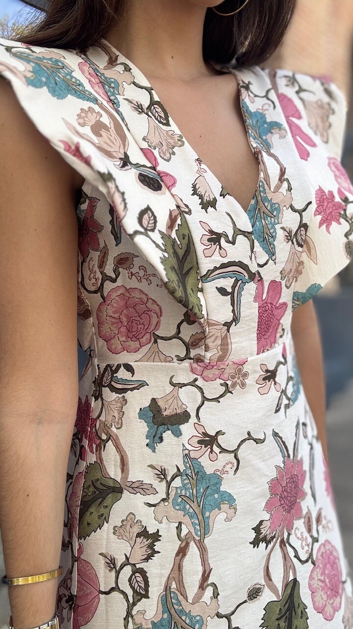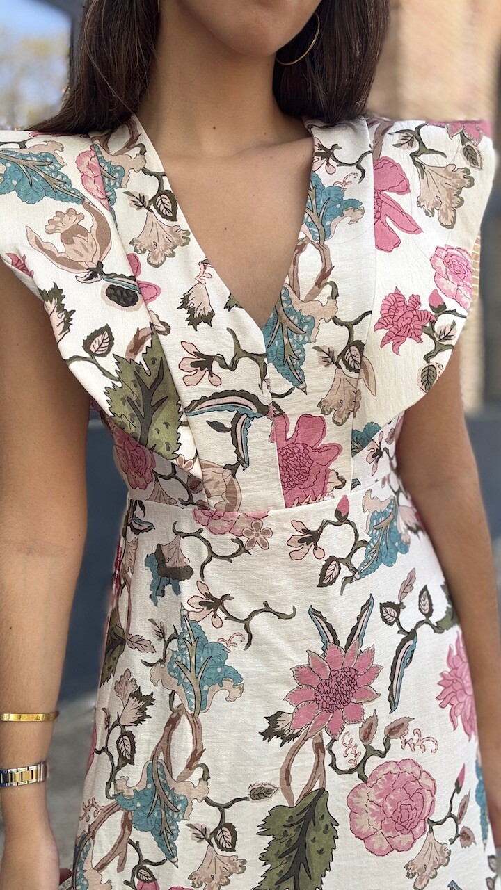 Vestido Estampado Flores Beige