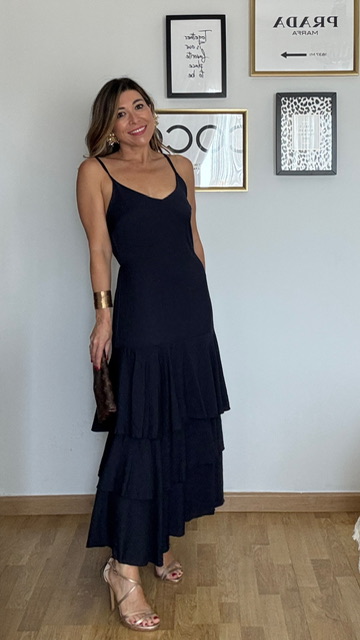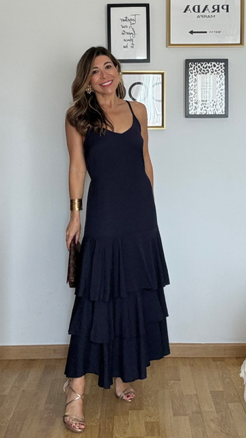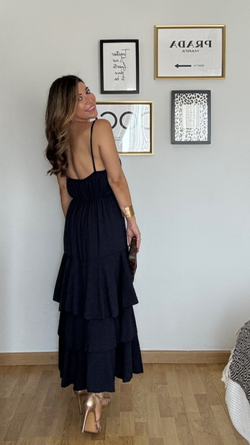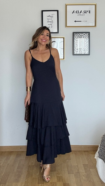 Vestido confeccionado en tejido simulando el lino con volantes  en color azul marino . Talla única válida desde la talla 36 hasta la talla 40/42.