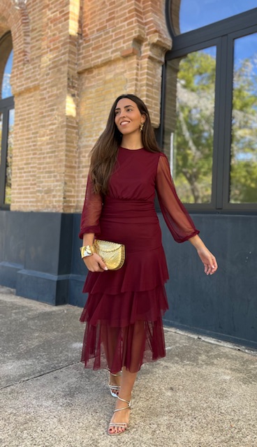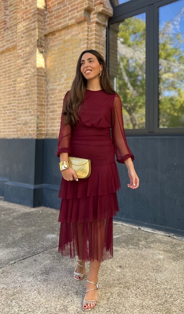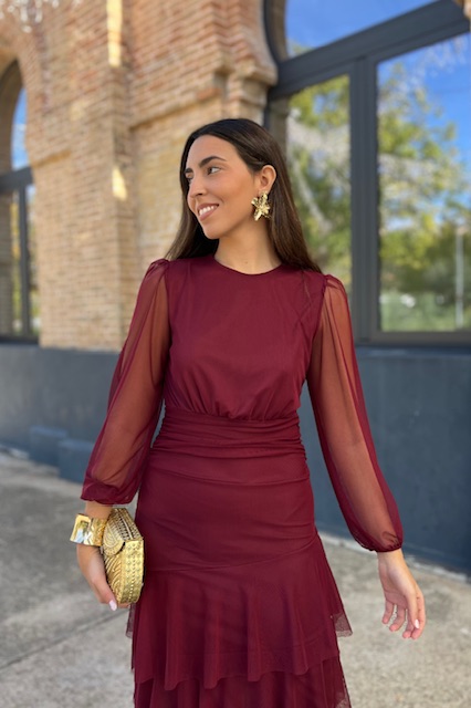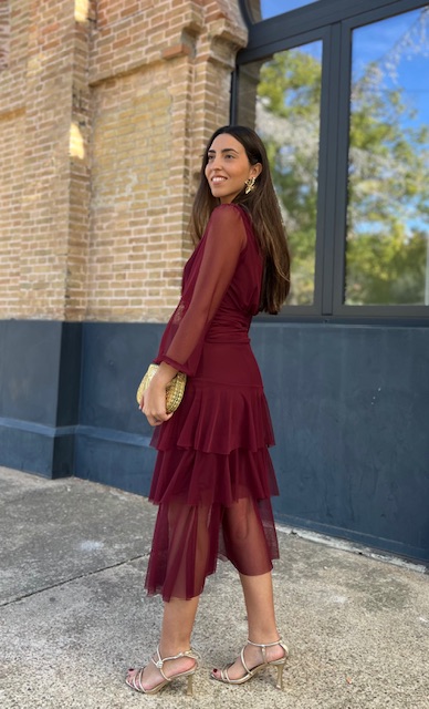 Vestido de tul con volantes con forro en su interior. Talla única válida desde la talla 36 hasta la 42.
