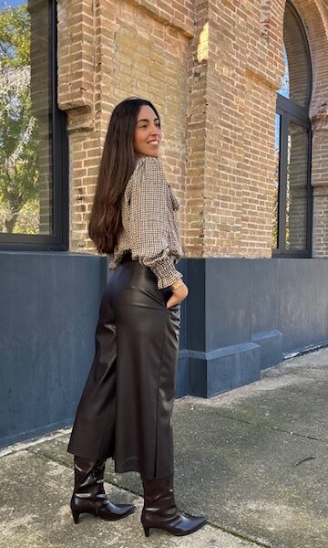 Pantalón culotte polipiel marrón chocolate