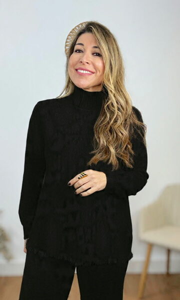 Jersey Cuello Cisne Botones Negro