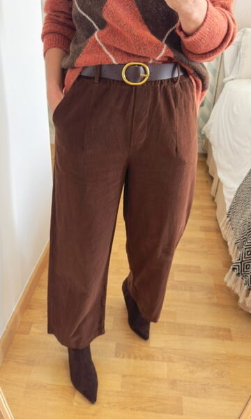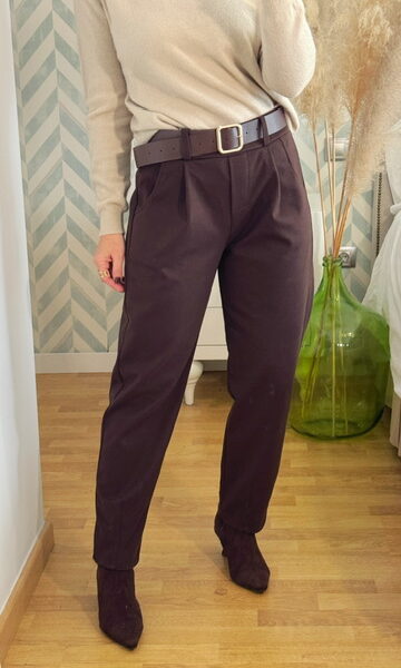 Pantalón paño pinzas marrón